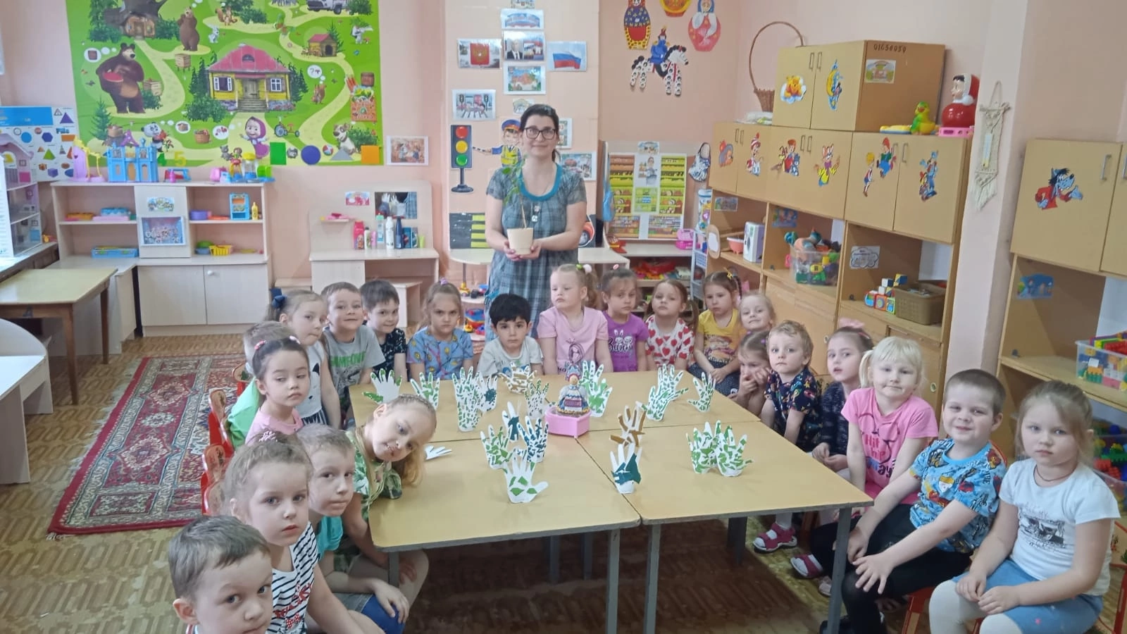 Сегодня дошкольники группы «ШаЛуНиШкИ» поздравляли с праздником нашего хорошего, доброго друга – березку, отгадывали загадки о красавице берёзке. На прогулке ребята наблюдали за березкой, водили хоровод вокруг неё и пели ей песенки, поиграли в игру «С какого дерева листок». Делали комплименты березке, говорили ласковые и красивые слова признательности, за то, что лечит своими нераспустившимися почками людей, дает целительный и вкусный берёзовый сок. Вернувшись в группу, с большим удовольствием сделали из бумажных ладошек дерево-березку, чем выразили свою любовь к русской березе. Насыщенный и познавательный получился праздник, дети получили положительные эмоции и хорошее настроение.